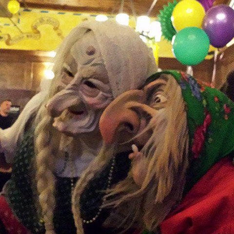In Tyrol, Austria the villages throughout the countryside have unique festivities and celebrations. Many of the villages have their own Fasnacht clubs. These clubs, true to medieval traditions consist of only men. Women however do a considerable amount of behind-the-scenes work. For example, elaborate costumes (each wearing a hand-carved and painted wooden mask) and floats are prepared for the event. Along with the masks, many characters wear ornate headdresses that in some cases extend three feet above their head. Many of the characters represent a season of the year with the idea of warding off winter and welcoming spring.