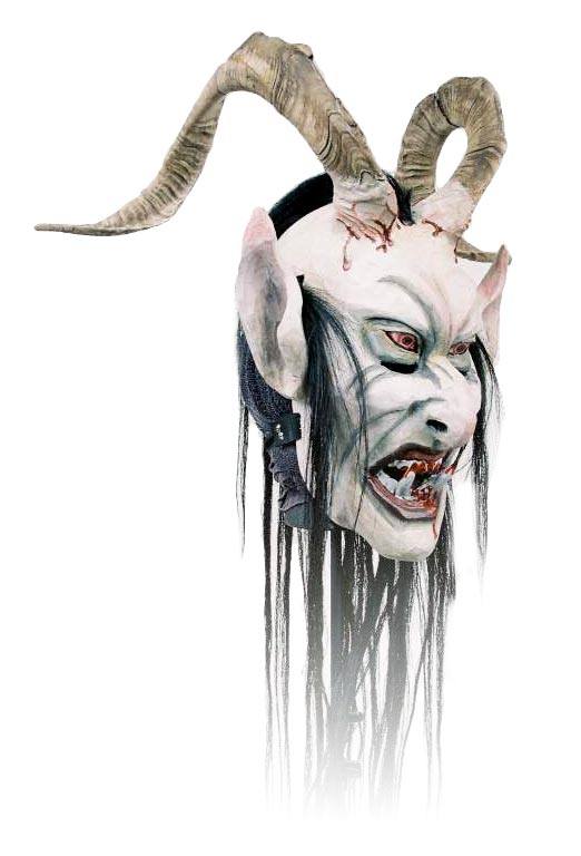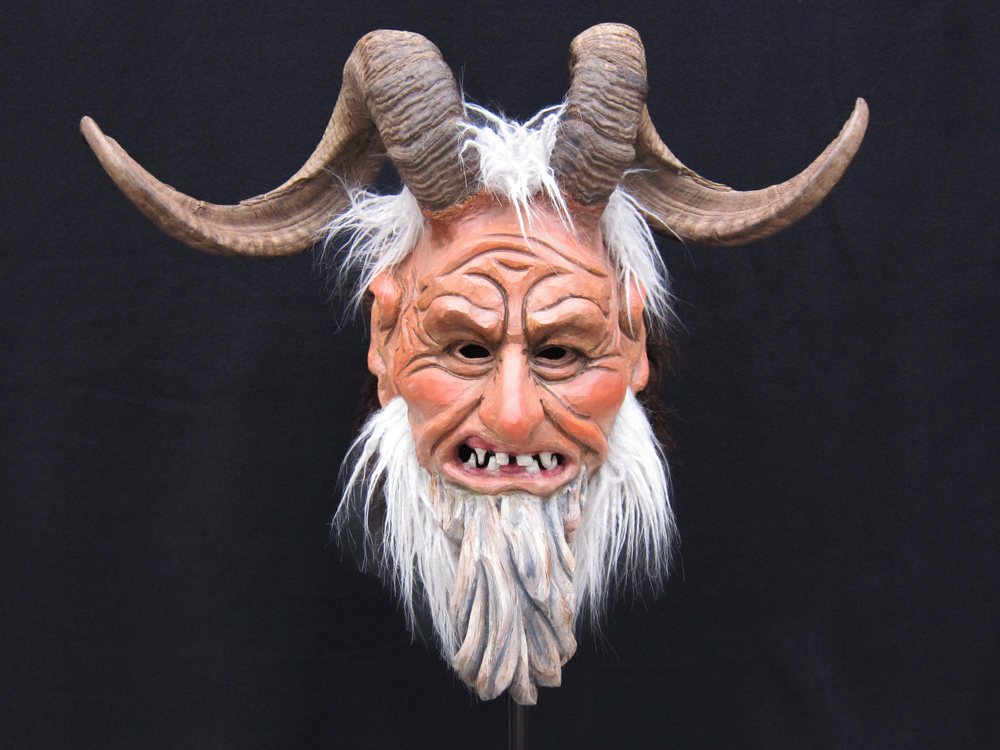 In many Alpine villages of southwestern Germany and Austria the tradition of Krampus and Perchten thrives. Both Krampus and Perchten costumes are quite elaborate. They wear hand-carved and painted Satin-like masks with horns protruding from them. They also wear ragged fur coats, dangling chains and cowbells.